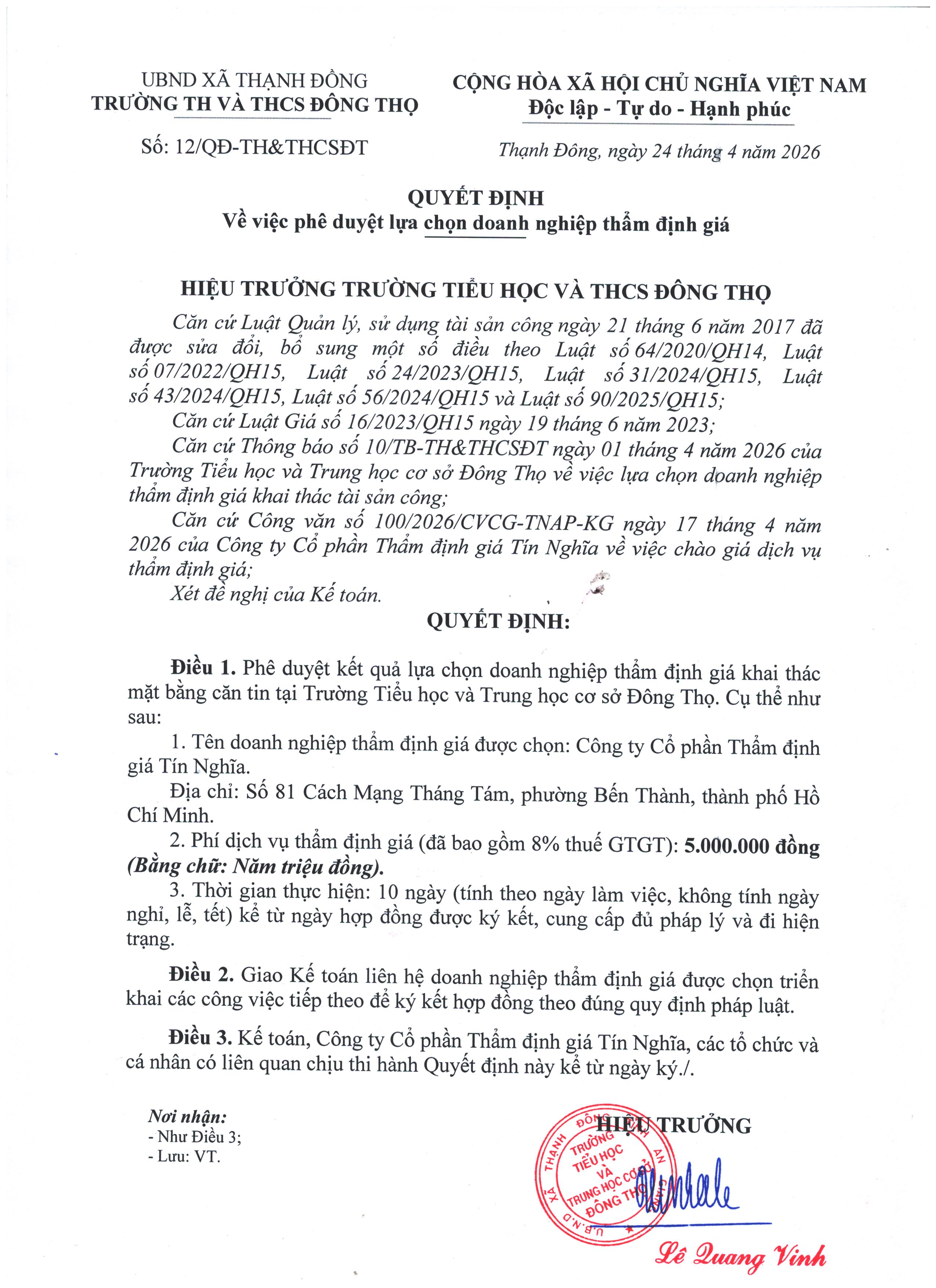 Quyết định phê duyệt lựa chọn doanh nghiệp thẩm định giá